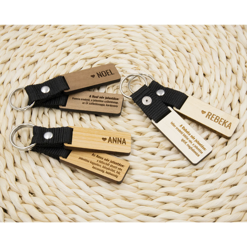 Lepd meg szerettedet névnapja alkalmából egy valódi fa kulcstartóval, melyre a neve és nevének jelentése kerül gravírozásra.